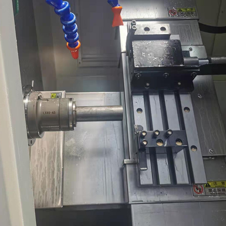 Установка заготовки: фиксация детали на основном шпинделе станка.